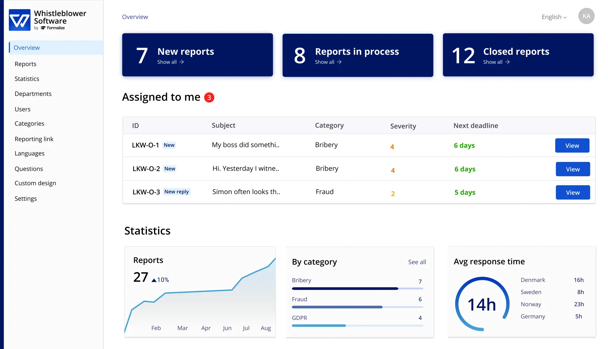 What's more, the platform can be tailored to your requirements, including branding, language, information required to file a report, and much more.